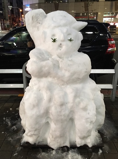 ほかにも、トトロの雪だるまがいたり、調整豆乳のキャラクターの雪だるまがいたり、と